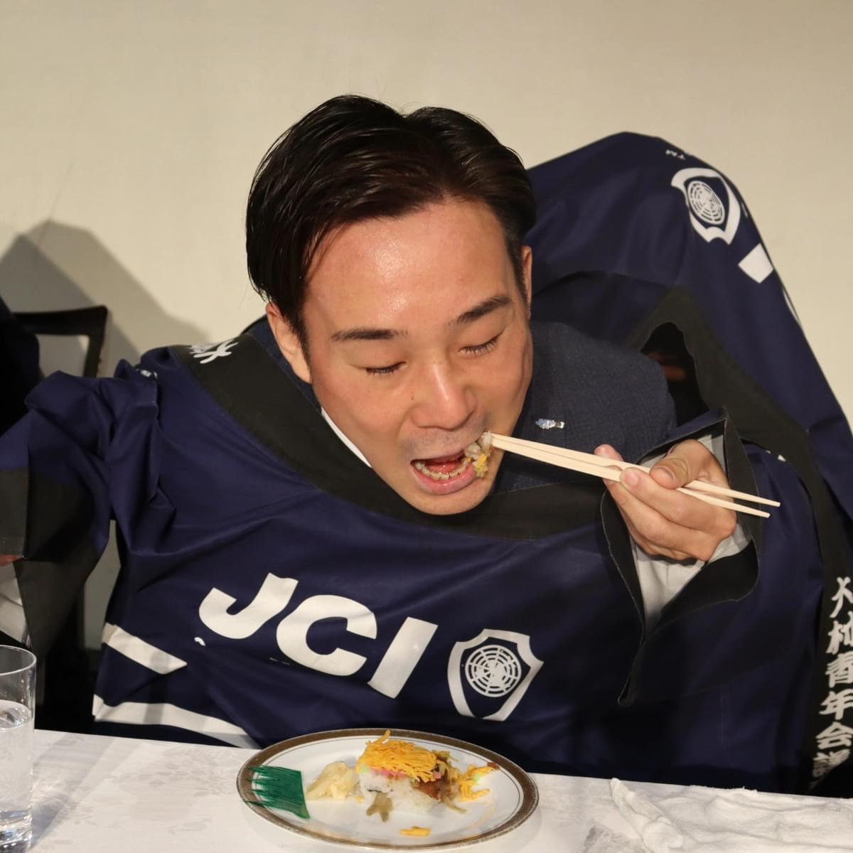 各LOMの理事長、専務による二人羽織大村寿司早食い対決は大いに盛り上がりました☺️やはりどのLOMも息ピッタリでした。