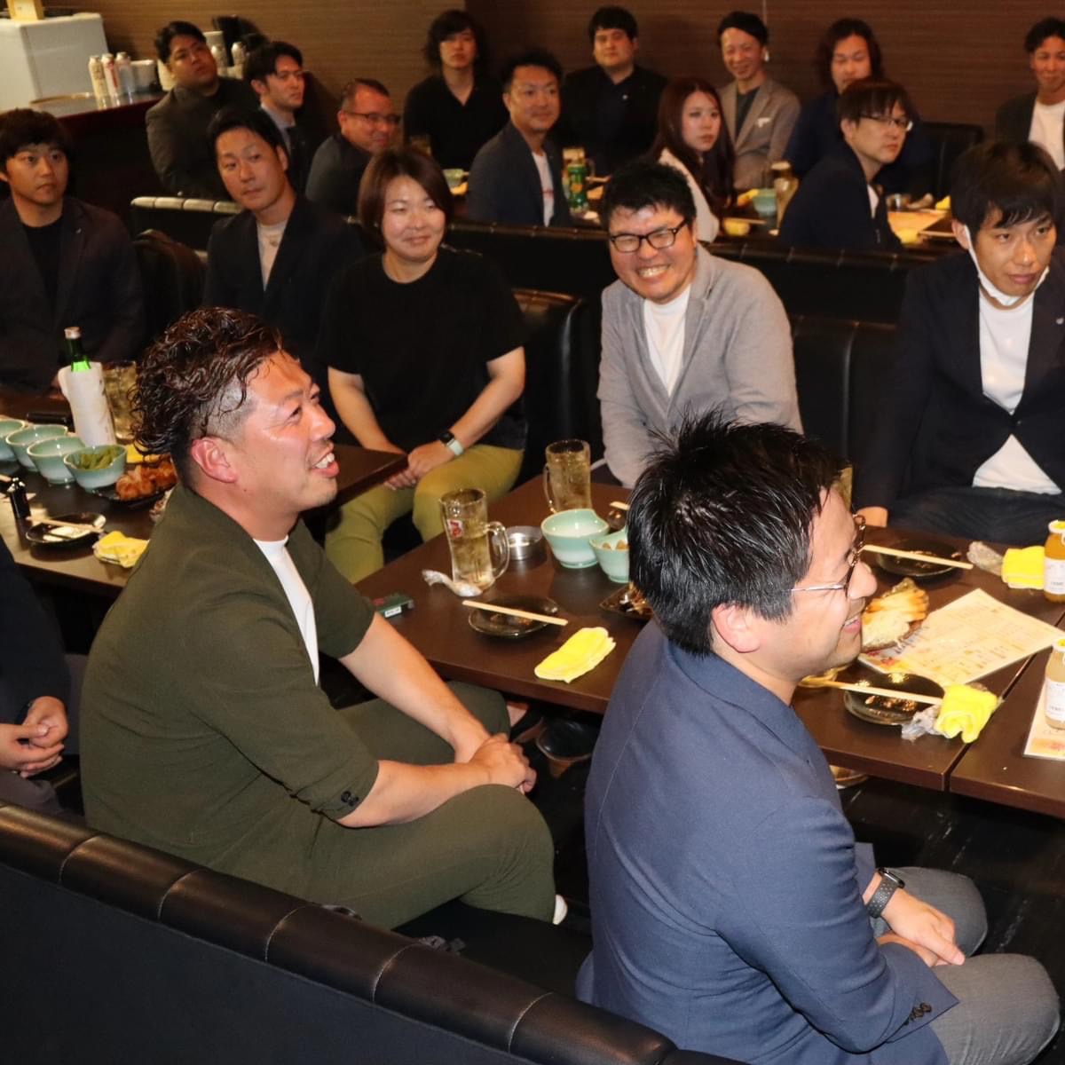その後は、会場を居酒屋すずめに移動しLOMナイトを開催しました。公益社団法人日本青年会議所 九州地区 長崎ブロック協議会 会長山口知宏君をはじめ、大会運営グループ副会長 川原 倫彦君、デジタル総務委員会 委員長 熊谷 将希君,戦略事務局 局長 新垣 充生君、各委員会に出向したメンバーの紹介と仮入会員の紹介を行いました。長崎JCの交流の機会を図るとともに、余興やスピーチをとおして大いに盛り上がりました。