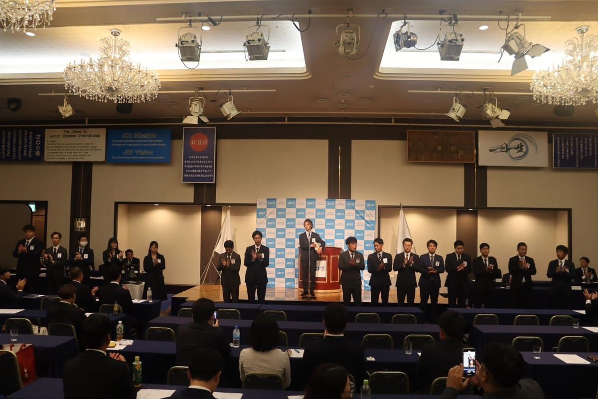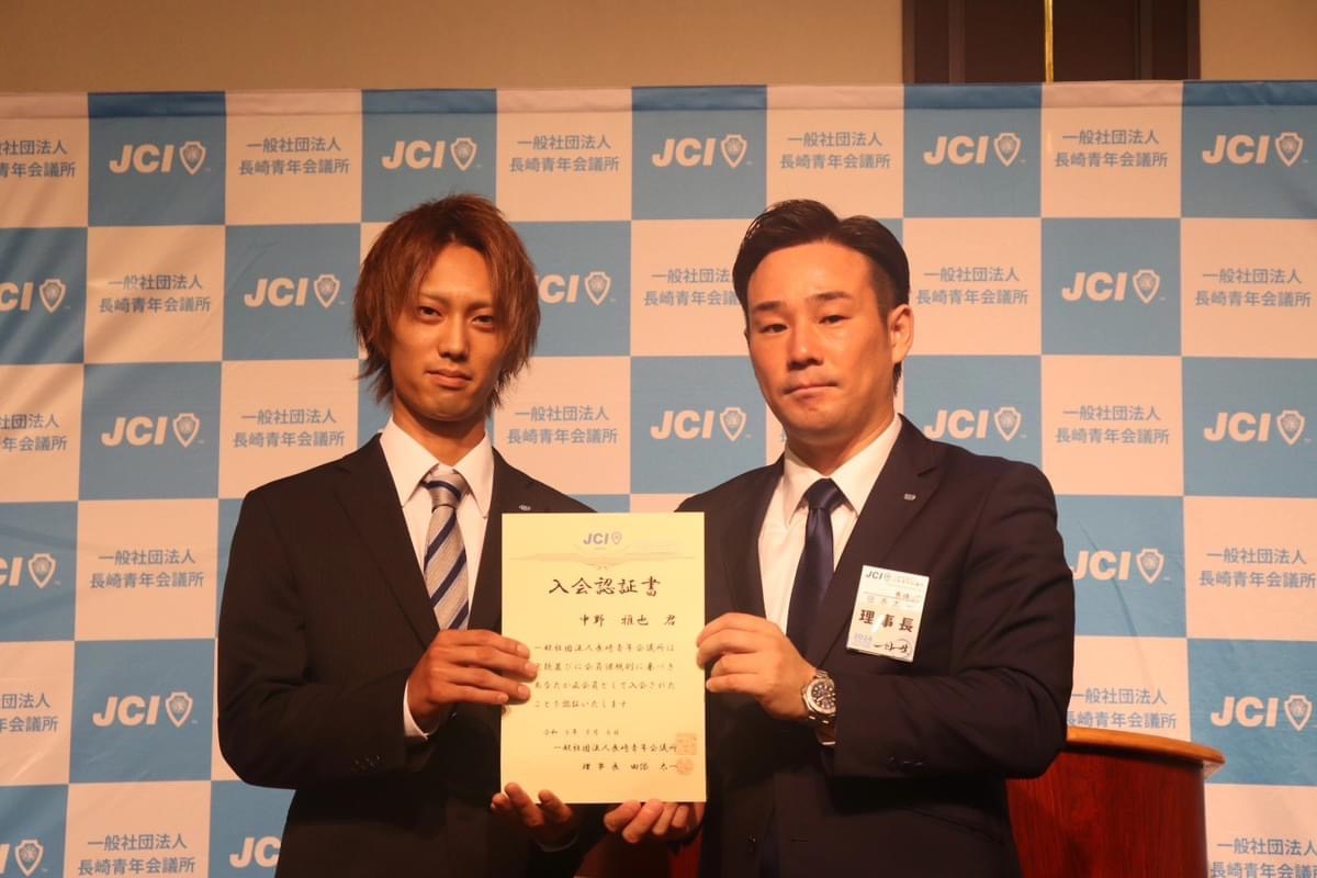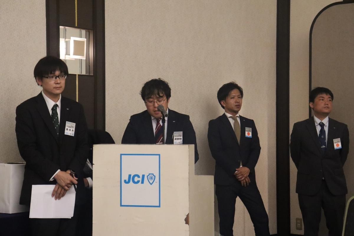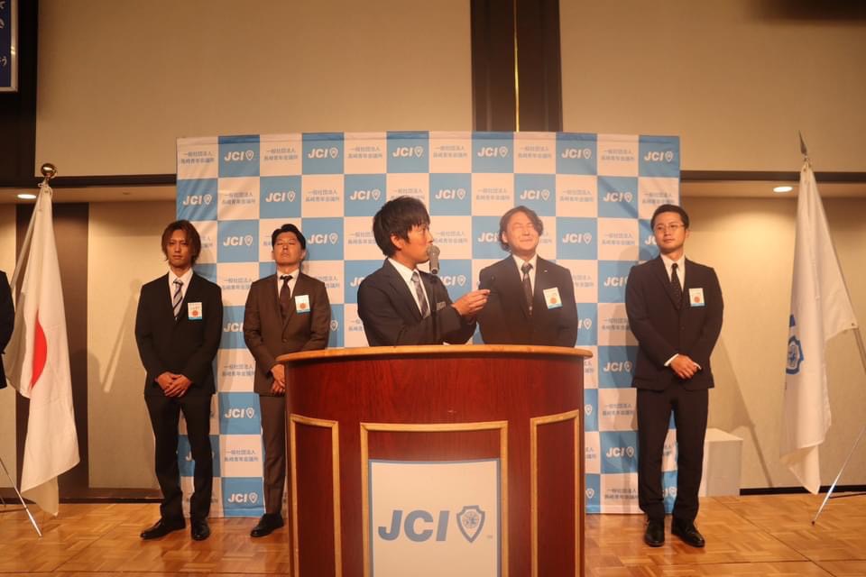 新入会員19名も無事にバッジ、承認状をいただき、代表挨拶をされた中野雅也君からも今後の活動への意気込みを聞けました。