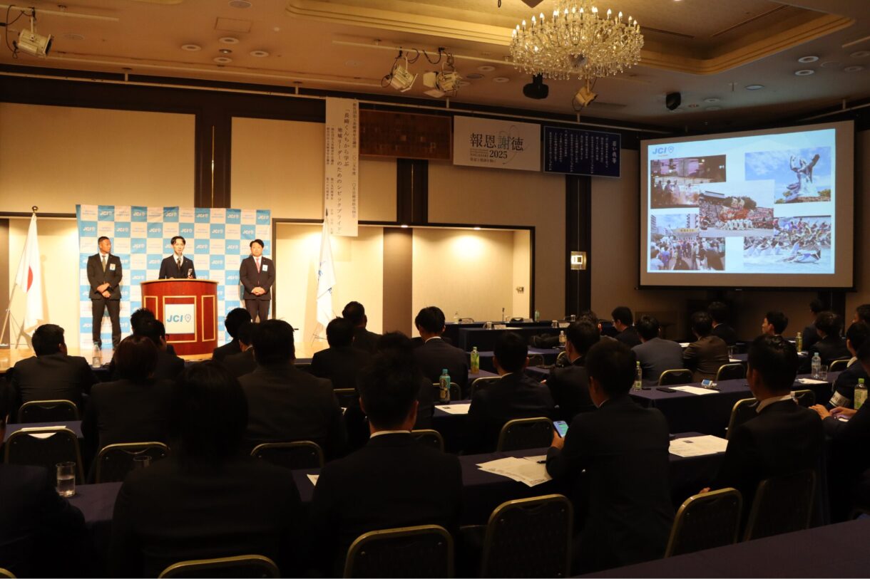 本例会は、年々受け継がれる文化の重みを通じて、JCの理念・ビジョンを改めて共有し、現状に満足せず自己を高め、地域の発展に寄与する姿勢を育むことを目的として実施されました。