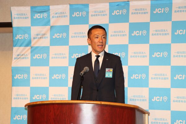 新入会員を代表して、折式田君からは、「これから長崎JCの一員として責任感を持って行動し、仲間と一丸となってフォローアップセミナーに取り組む」と力強い決意が述べられ、会場は大きな拍手に包まれました。