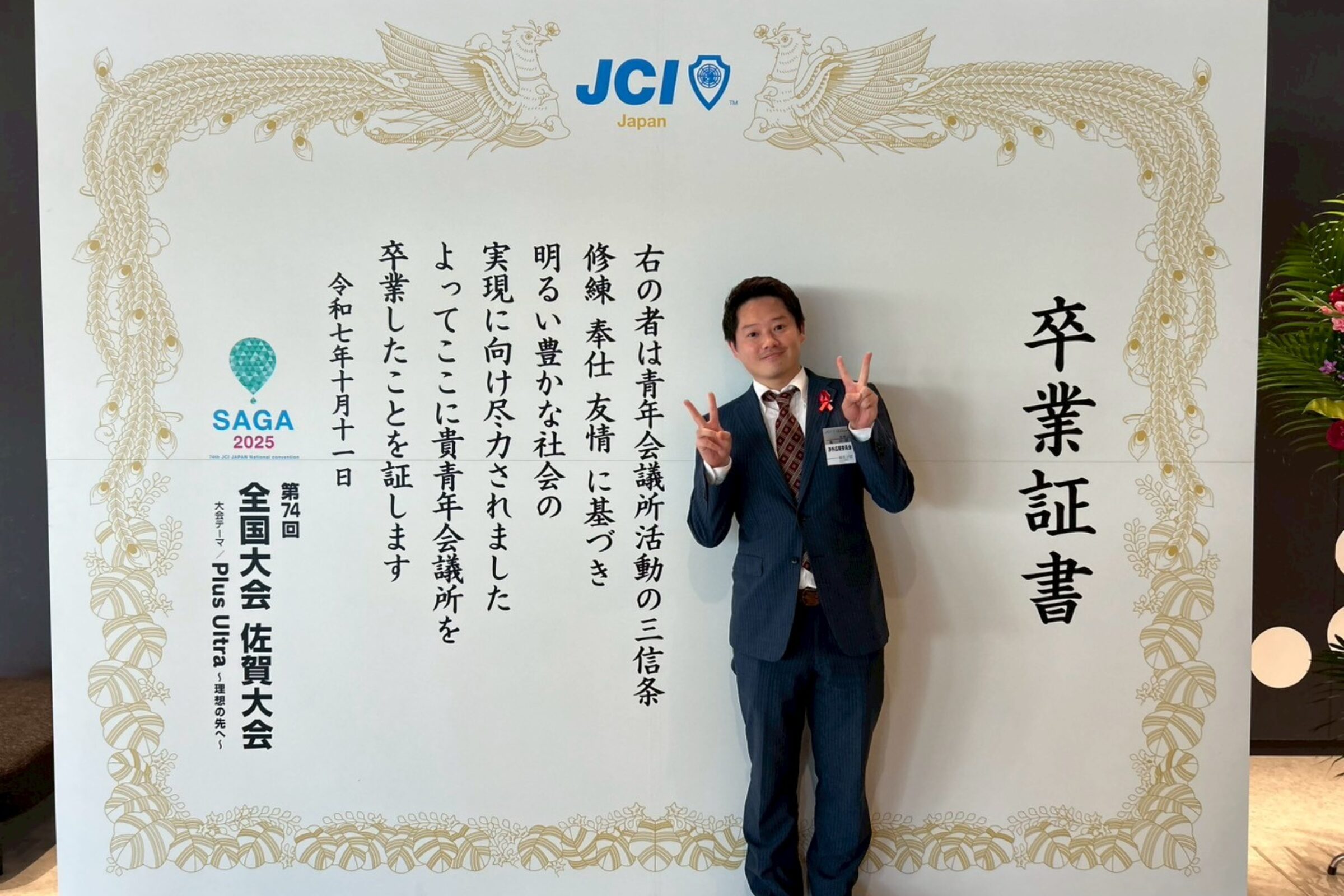 大会式典後には、これまでJC運動に尽力された卒業予定者を讃える卒業式も執り行われ、長崎JCからは本年度、9名の御殿様・御姫様がご卒業を迎えられます。