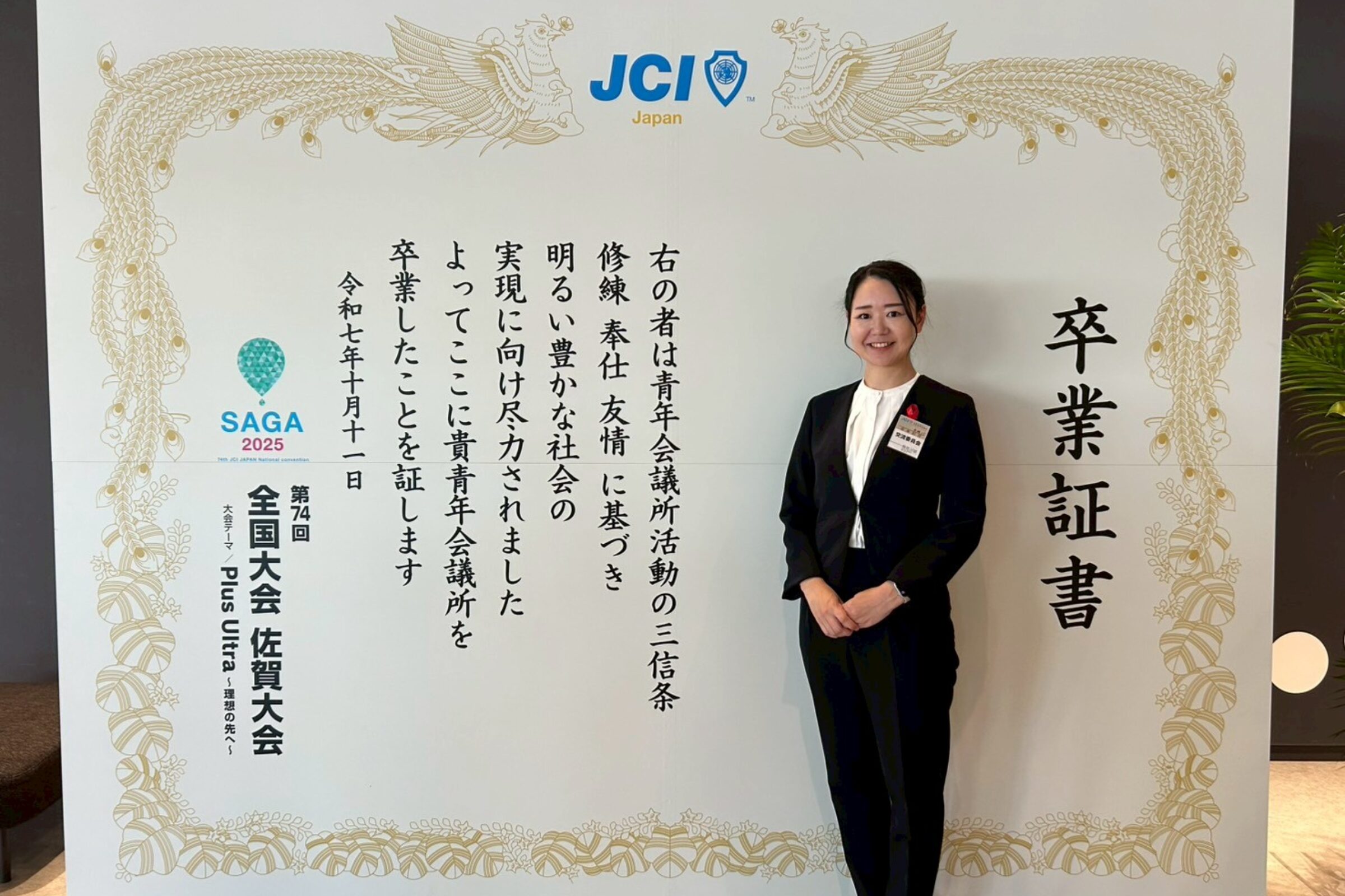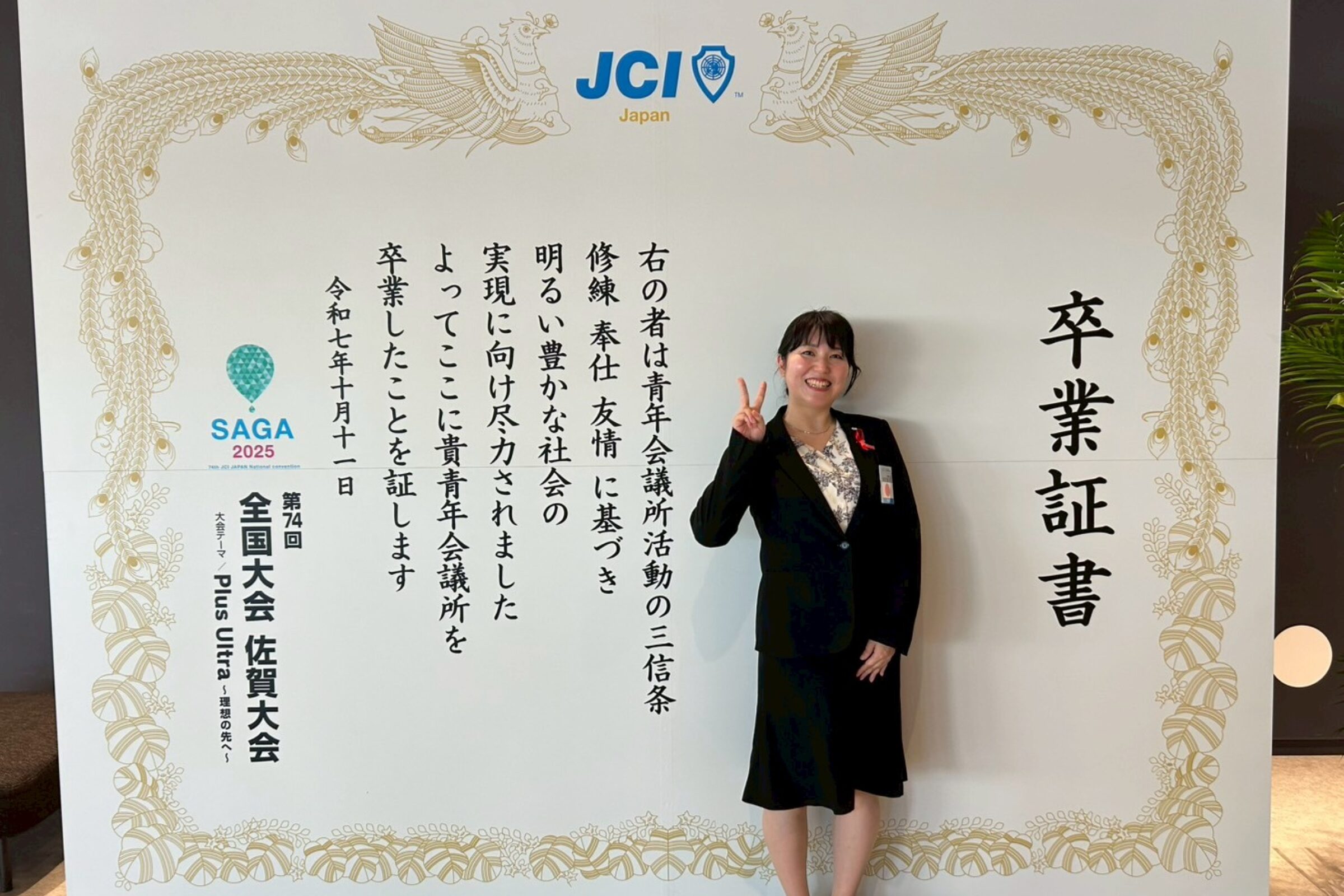 卒業式では、日本JC 2025年度副会頭 神畑 浩子君が卒業生代表としてスピーチを行いました。