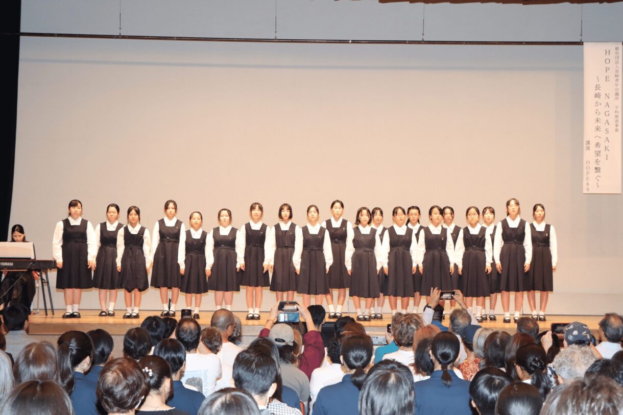 また、冒頭には純心女子高等学校音楽部の皆様に、長崎市平和祈念式典でも毎年歌われている「千羽鶴」の合唱を披露していただき、平和への想いを改めて感じていただけたことと思います。純心女子高等学校の皆様、ご協力ありがとうございました。